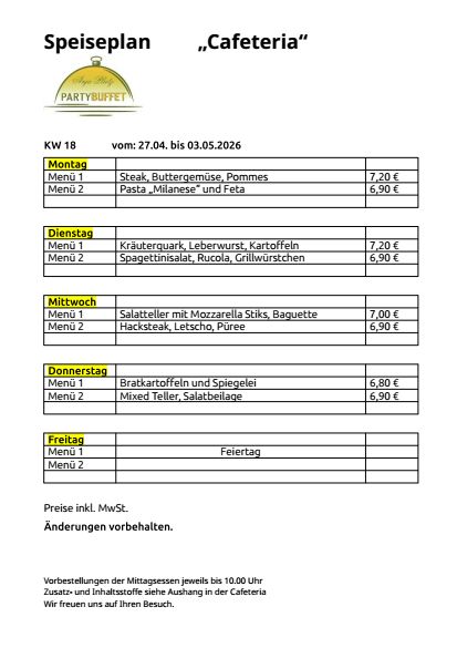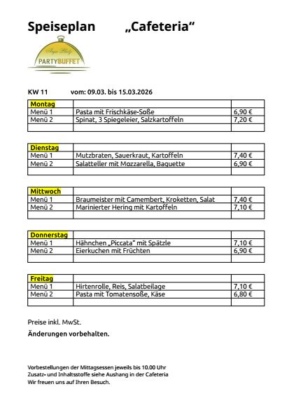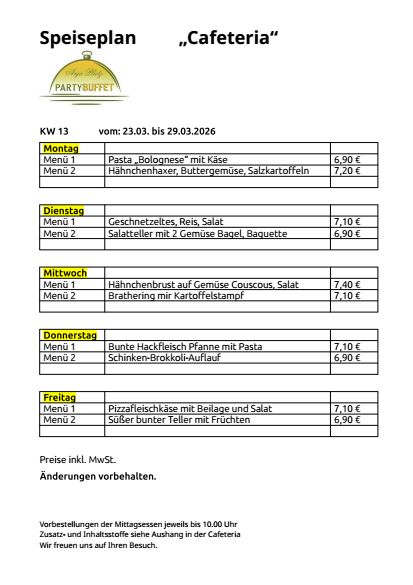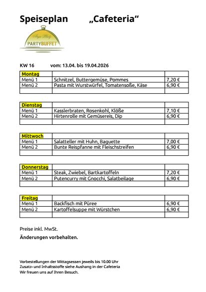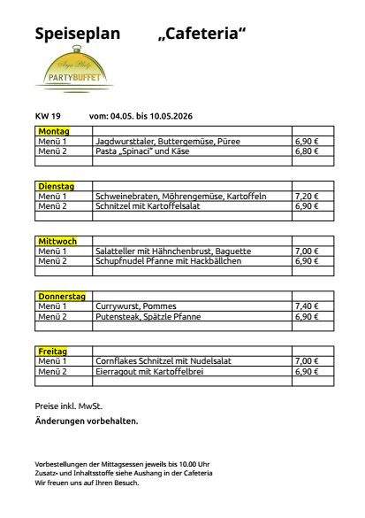 Unsere Speisepläne zum Download Telefonnummer Cafeteria in Mittweida im Haus MWE GmbH: 03727 97 62 36 KW 11 KW 12 KW 13 KW 14 KW 15 KW 16 KW 17 KW 18 KW 19